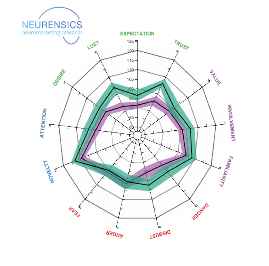 We believe it is essential to use BOLD-MRI for pretests, as BOLD-MRI makes it possible to distinguish between the many brain networks that are important to evaluate the effectivity of ads. Limbic brain structures particularly, like the nucleus accumbens, are hard to measure with techniques such as EEG.