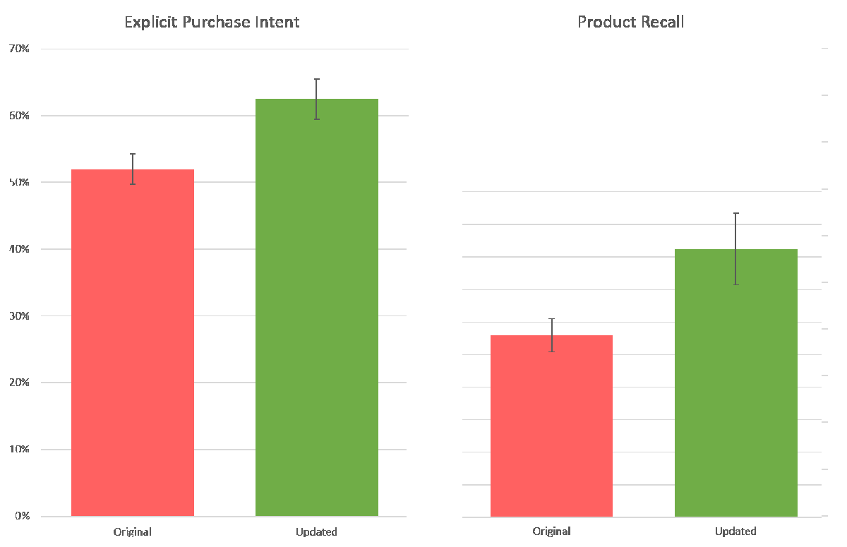 Explicit purchase intent increased by a factor of 20% (from 52% to 63%).